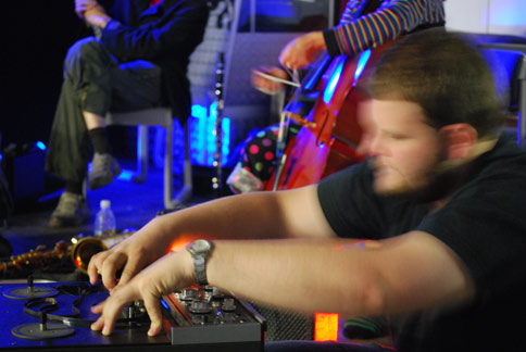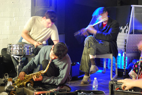 Audiovisual, free improvised nightmares filled Wollongongs night air on Thursday the 9th of October. Many thought they may loose their hearing, for others a life changing experience. Aaron Hulls quiet, incredibly controlled set built to an earth shattering climax removing paint and debrit from the ceiling of Music Farmers which shook from foundation to roof. Scott Morrison's audiovisual work lit up the walls of Music Farmers, the ebb and flow of sound and high quality projected images of fields meeting gradually freshly painted walls ofering the audience a tast of his work, and leaving them eager for more. The Splinter Orhestra created subtle controlled improvisations and a sound world of extended, varied, weird and wonderful techniques. One of 1/4_inchs memorable evenings for 2008.
